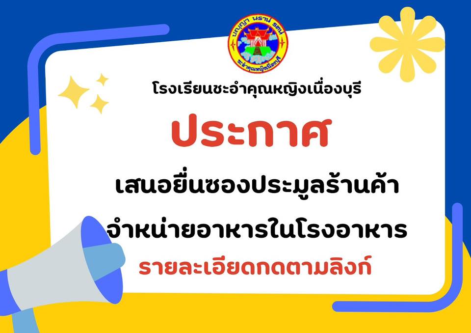 โรงเรียนชะอำคุณหญิงเนื่องบุรี ประกาศเสนอยื่นซองประมูลร้านค้า จำหน่ายอาหารในโรงอาหาร รายละเอียดกดตามลิงค์ด้านล่าง
