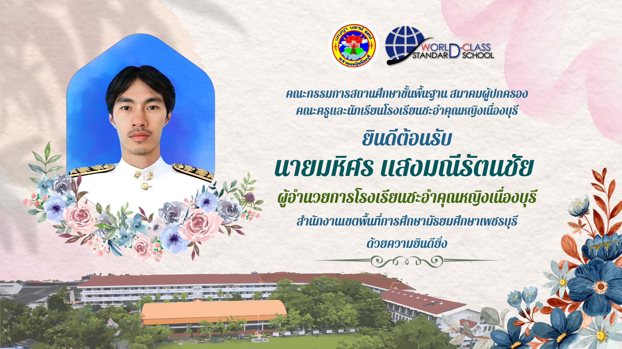 วันอังคารที่ ๑๐ ตุลาคม พ.ศ.๒๕๖๖ เวลา ๑๓.๓๙ น. นายมหิศร แสงมณีรัตนชัย ผู้อำนวยการโรงเรียนชะอำคุณหญิงเนื่องบุรี เข้ากราบสักการะ พระพุทธรูปประจำโรงเรียน และสิ่งศักดิ์สิทธิ์ภายในโรงเรียนชะอำคุณหญิงเนื่องบุรี เนื่องในโอกาสเดินทางเข้ารับตำแหน่งผู้อำนวยการโรงเรียนชะอำคุณหญิงเนื่องบุรี จากนั้น เข้าสู่ห้องประชุมสราญสุข โดย มี นายไกรวุฒิ ประกาศวุฒิสาร ประธานคณะกรรมการสถานศึกษาขั้นพื้นฐาน โรงเรียนชะอำคุณหญิงเนื่องบุรี กล่าวต้อนรับ และแขกผู้มีเกียรติร่วมกล่าวแสดงความยินดี และมอบของที่ระลึก