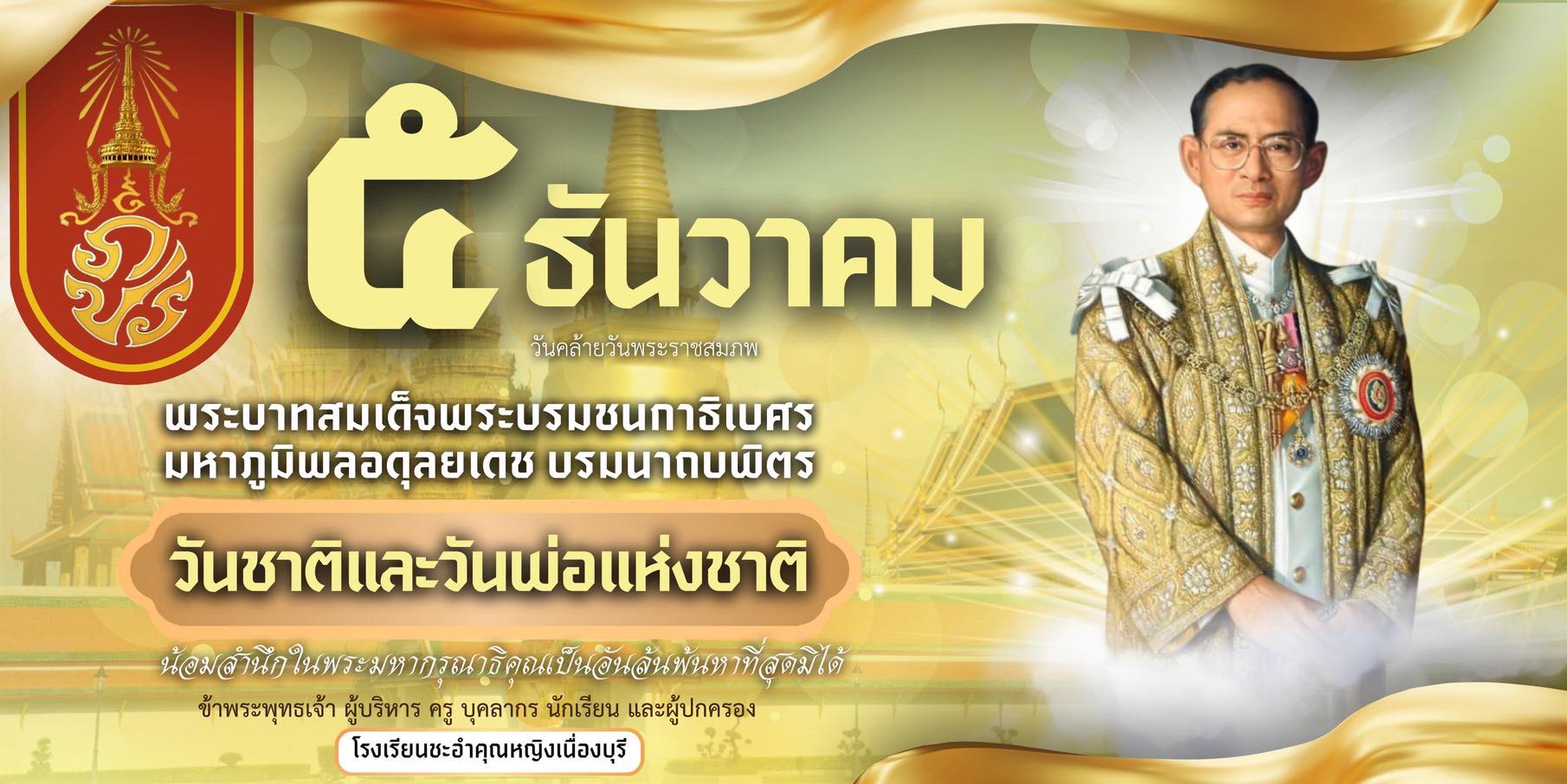 5 ธันวาคม วันคล้ายวันพระราชสมภพ พระบาทสมเด็จพระบรมชนกาธิเบศร มหาภูมิพลอดุลยเดช บรมนาถบพิตร น้อมสำนึกในพระมหากรุณาธิคุณ เป็นล้นพ้นอันหาที่สุดไม่ได้ ข้าพระพุทธเจ้า ผู้บริหาร ครู บุคลากร นักเรียน ผู้ปกครองโรงเรียนชะอำคุณหญิงเนื่องบุรี