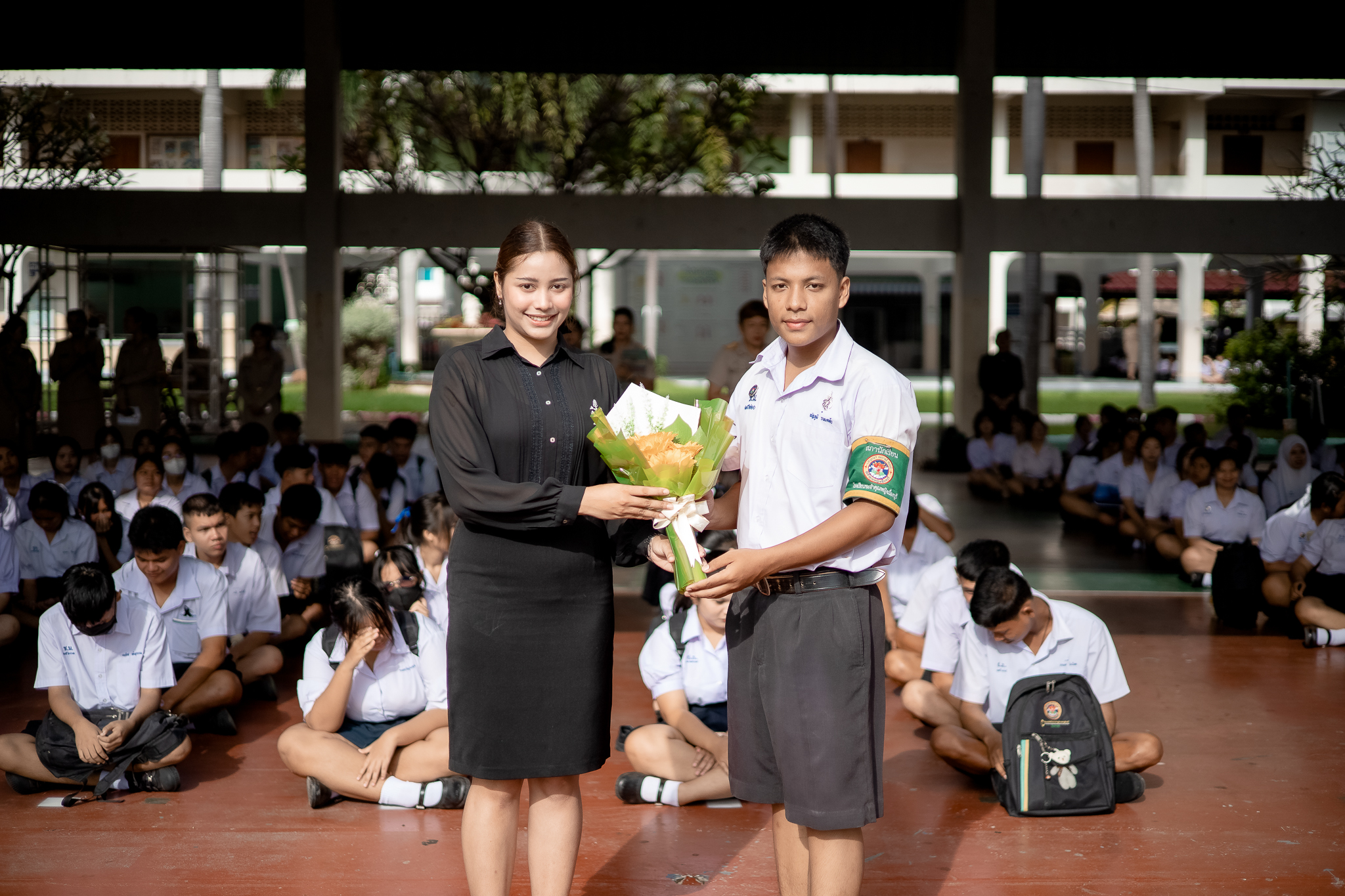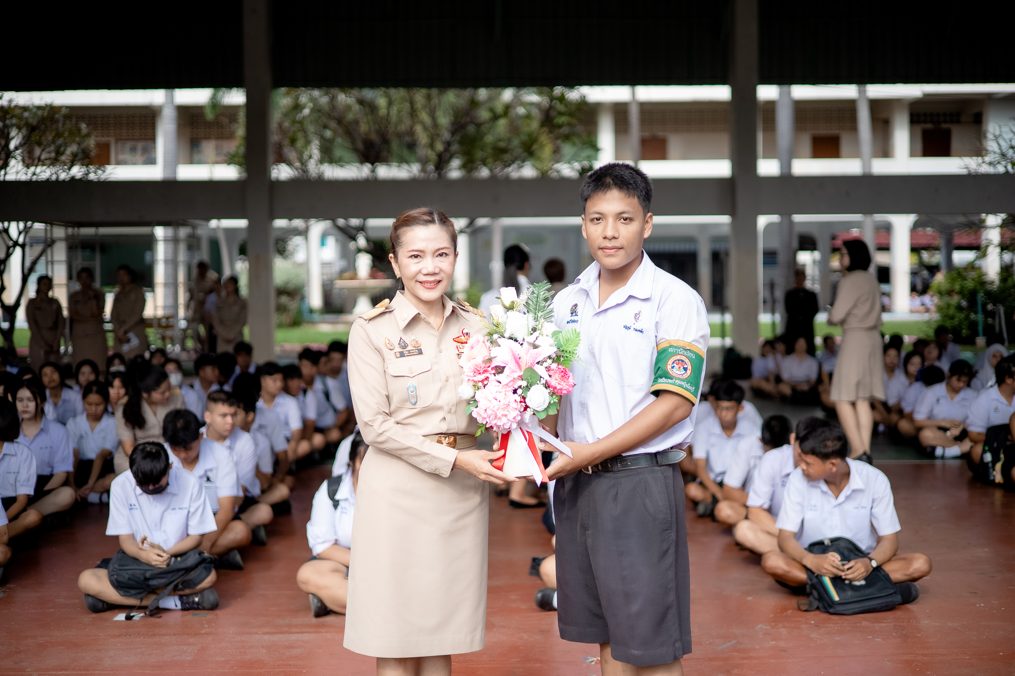 โรงเรียนชะอำคุณหญิงเนื่องบุรี ขอแสดงความยินดีและต้อนรับ ท่านผู้อำนวยการ นางสาวศิริญา เดชะคำภู อย่างเป็นทางการ ในวันนี้ประธานนักเรียนได้มอบช่อดอกไม้ เพื่อแสดงความยินดีและความเคารพ