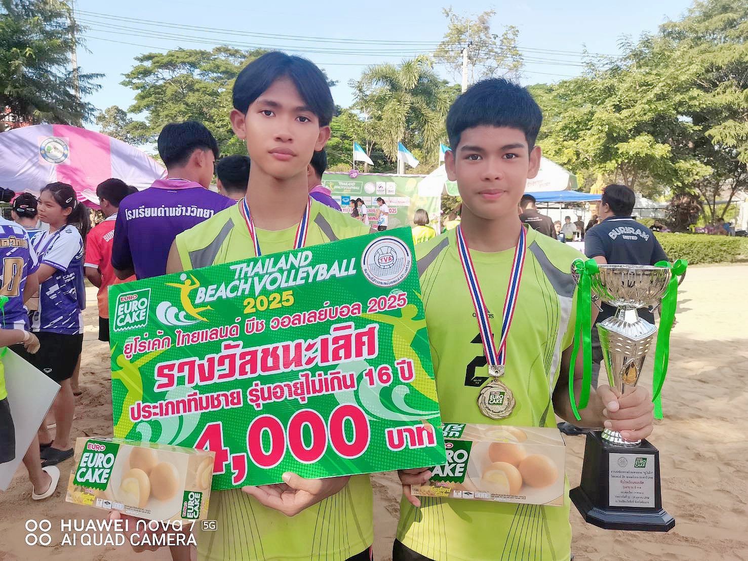 Thailand Beach Volleyball 2025 ยูโร่ ไทยแลนด์ บีช วอลเลย์บอล 2025 ขอแสดงความยินดีกับ ตัวแทนนักเรียนโรงเรียนชะอำคุณหญิงเนื่องบุรี ได้รับรางวัลชนะเลิศ ประเภททีมชาย รุ่นอายุไม่เกิน 16 ปี และรางวัลรองชนะเลิศอันดับ 1 ประเภททีมชาย รุ่นอายุไม่เกิน 18 ปี