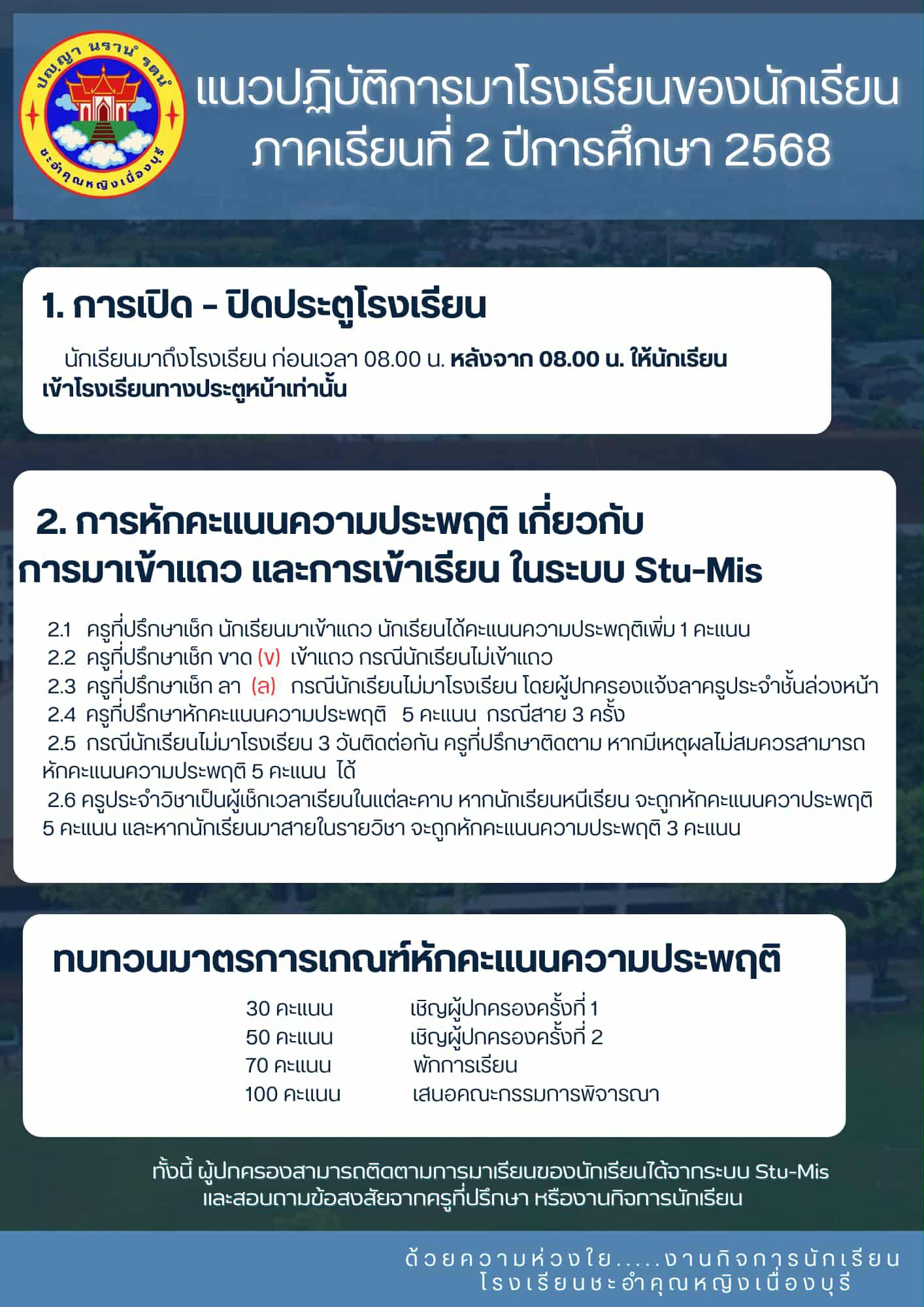 แนวปฏิบัติการมาโรงเรียนของนักเรียน ภาคเรียนที่ 2 ปีการศึกษา 2568